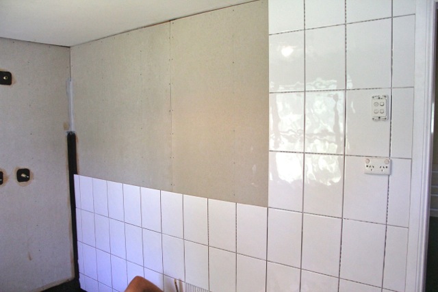 You wouldn't believe it. I was painting in the pantry; Joey came to me and said he was out of tiles. He was one tile short. No way. Yes. I went and had a look. We weren't ONE tile short - we were HALF A TILE short. Absolute true story....and there were 4 broken tiles in the boxes I picked up on Thursday!! So we bought another box of 16 (in case we ever need to match them in the future). Half a tile.